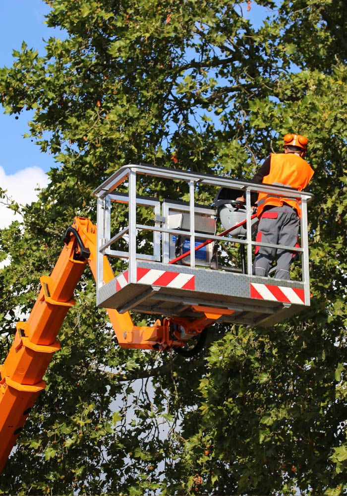 Per piante non arrampicabili, pericolanti o collocate in spazi difficili, utilizziamo piattaforme aeree che permettono interventi accurati anche a grandi altezze.