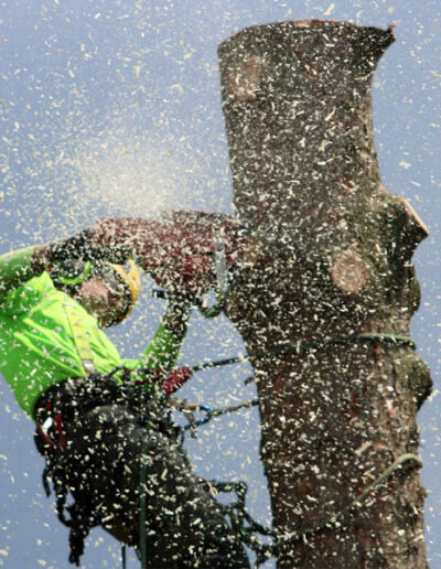 Ci occupiamo dell’abbattimento di alberi di ogni dimensione, anche in contesti complessi. Quando l’utilizzo di mezzi meccanici non è possibile, interveniamo con la tecnica del tree climbing, che consente di potare o rimuovere alberi direttamente in arrampicata, senza l’impiego di piattaforme aeree.