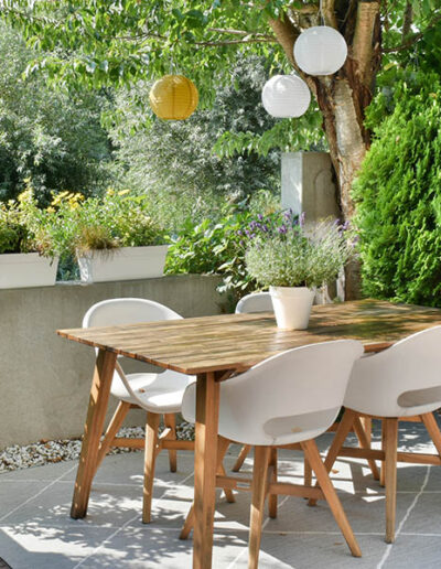 Studiamo combinazioni che garantiscano colore e vitalità in ogni stagione, alternando fioriture e piante strutturali per mantenere il terrazzo ordinato e piacevole tutto l’anno.